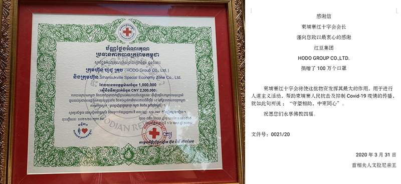柬紅會(huì)舉行紅豆集團(tuán)捐贈(zèng)100萬口罩接收儀式 我謹(jǐn)向您(周海江)致以最衷心的感謝……就如此句所說:‘守望相助,中柬同心’